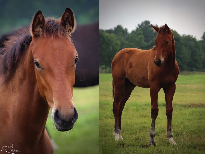 Am 335. Tag war es soweit. Pünktlich nach 11 Monaten bringt High Fidelity für die Zuchtgemeinschaft Elisabeth Ahn, Andreas Klinker & Pferdezucht Christian Wöber das sechste Fohlen zur Welt. Ein edles Hengstfohlen mit 3 weissen Söckchen an den endlos langen Beinen. In den ersten Lebensstunden ist Dream with Me AWK schon sehr zutraulich und aufgeweckt. Im Bewegungsablauf lässt der junge Tänzer keine Wünsche offen. Ein modernes Hengstfohlen mit viel Ausdruck und Typ für den gehobenen Dressursport.