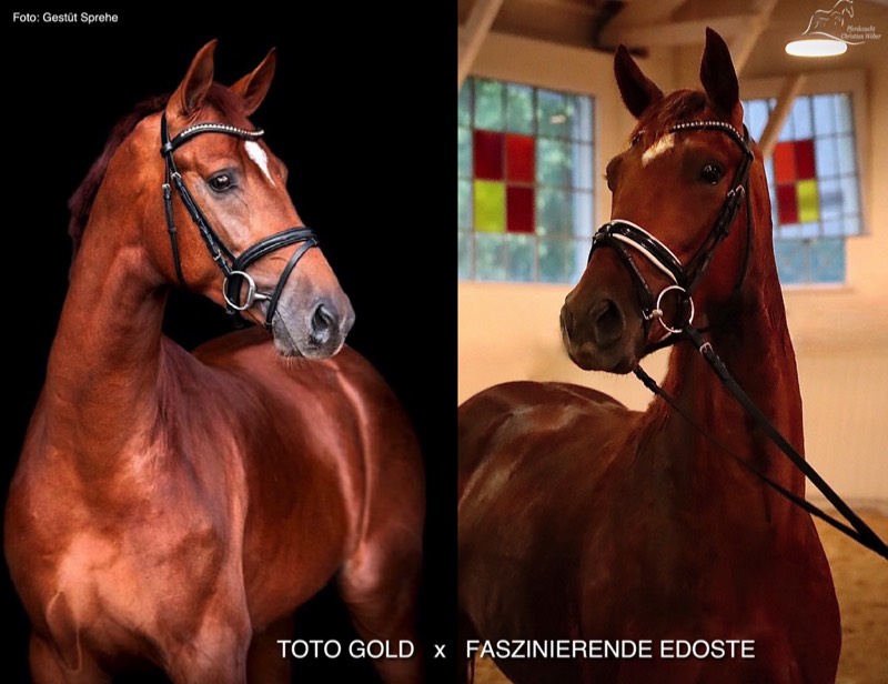 Mit der Abstammung Toto Gold x Blue Hors Zack x Sir Donnerhall I x Fürst Heinrich x Brentano II x Hill Hawk xx bringt Fenomenale Edoste eine besonders wertvolle Blutkombination mit sich. Eine Schönheitskönigin aus dem EDOSTE Stamm der unzählige Grand Prix Pferde, Körsieger , Staatsprämienstuten & Auktionsspitzen hervorgebracht hat. Wir sind sehr gespannt wie sich diese junge Perle entwickeln wird.