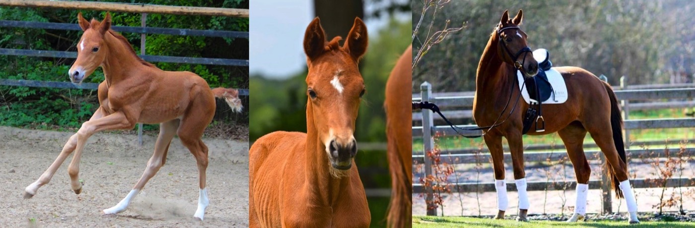 Besonders im Typ ist dieses Fuchsstutfohlen herausragend. Ihr traumhaftes Köpfchen ziert ein kleiner Stern. An den Hinterbeinen 2 x weiße Söckchen lassen diese junge Dame in einer tollen Optik erstrahlen.