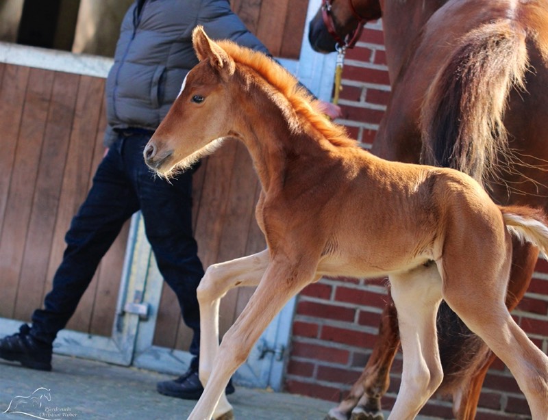 Fürstin Edoste brachte ihr erstes Fohlen zur Welt. Ein Stutfohlen von Blue Hors Zack mit überragendem Typ und Charme, langbeinig aus einer der besten Stutenstämme Oldenburgs. Dressurhengste im Pedigree wie Perlen an einer Schnur. Auf die Legende Donnerhall auf der Mutterseite ingezogen, glaube ich bietet dieses Stutfohlen alles für Zucht und Sport. Urgrossmutter ist hier meine ehemalige Stammstute Elitestute