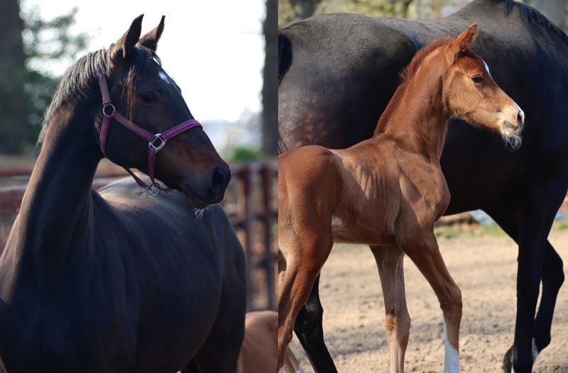 Full of Dreams ist für mich eine ganz besondere Stute. Ihr Geburtstag der 15.03 ist auch der Geburtstag ihrer Großmutter Federspiel die leider viel zu früh verstorben ist. Sie ist auch das erste Fohlen von Felicia. Mit ihrer dunkelbraunen Jacke, 4 x weiss an den langen Beinen und einem Stern auf der Stirn war es von der ersten Sekunde an, als ich diese Stute sah um mich geschehen. Ein Zuchtjuwel für die Zukunft aus Sport und Zuchterprobten Stutenstamm.